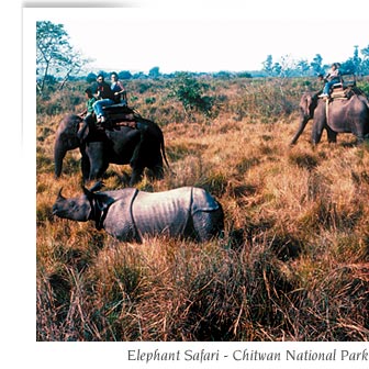 Chitwan is a very popular wildlife safari destination on account of its thriving wildlife population and easy accessibility from both Kathmandu and Pokhara. Visitors have the opportunity of close encounters with wild three-ton rhinos on elephant back; a thrilling and frightening experience but not really dangerous as both the elephants and their handlers are well experienced in their work. The park is home to an immense variety of wildlife so there are a lot more other creatures to see besides the rhino. That, including good facilities for accommodation and jungle activities makes the Royal Chitwan National Park well worth a visit. Chitwan ranks third, after Kathmandu and Pokhara as the place most preferred by visitors. Vegetation Wildlife Other resident mammals include the Leopard, Gaur (Indian Bison), Wild Elephant, Sloth Bear, Fresh Water Dolphin, Rhesus Monkey, Langur, Wild Boar, Striped Hyenas, Dhole (wild dog), Jackal, Ratel, Palm Civet, Mongoose, Four Horned Antelope, Sambar Deer, Spotted Deer, Hog Deer, and Barking Deer. Chitwans crocodiles are by far the most spectacular species among the reptilian creatures. On bright sunny days, they can often be seen basking along the riverbanks. There are two species native to Chitwan, the Gharial and the Mugger. The Gharials are by nature non-predatory and thrive solely on fish, but the Mugger is an aggressive carnivorous beast. Other reptiles indigenous to Chitwan are the Indian Python, Monitor Lizard, Pangolin, Tortoise, and King Cobra along with 19 other species of snakes. At least 485 different species of birds have been recorded inside Chitwan. The forests, grasslands, lakes, swamps, and rivers all provide a wide variety of habitat and food for the various species. Chitwan is a paradise for both birds and bird watchers. Camps & Resorts The theme on accommodation and activities in these camps are a blend of the native Tharu culture combined together with the opulence of the erstwhile British Empire . You may choose to stay in either the safari-style tented camps or in semi-detached twin-roomed huts (that are technically designated as lodges in Chitwan). Camps and resorts inside the park offer package programs that range between 1 and 3 nights. These package programs include accommodation on full board, jungle activities, arrival/departure transfers to the nearest road-head/airport and all the requisite park fees. A 1-night/2-day package is quite impractical due to the fact that much of both the days are spent in transit. However, the 2-night/3-day package is ideal while wildlife enthusiasts could even opt to go for a 3-night/4-day program. Jungle activities on a 2-night/3-day program include an elephant safari, a canoe ride, nature walk, bird-watching, Tharu folk dances and a slide show on the history of the Park. The 3-night program is supplemented by a jungle drive, and that includes extra elephant and canoe rides. Meals are served table d'hôte in a variety comprising of Chinese, Continental and Nepali cuisine. The bars are generally well stocked, and besides offering drinks and cocktails, they will have a variety of souvenirs on sale. |