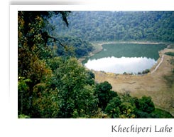 Twenty kilometers beyond Pemayangtse at an altitude of 1,951 meters, this small and tranquil lake is a pilgrimage spot sacred to the Sikkimese Buddhists. Strangely, not a single leaf is seen floating on its waters. Legend has it that all day long, the birds of the forest dutifully pick them up. Nearby Khechiperi are typical villages that depict a now forgotten lifestyle. The whole area is also an excellent site for bird watching.