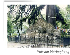 Yuksam has two sites very sacred to the Sikkimese; Norbugang Chorten, the site of the first Chogyal's coronation, and Dubdi Monastery, the second oldest monastery in Sikkim built around 1701.